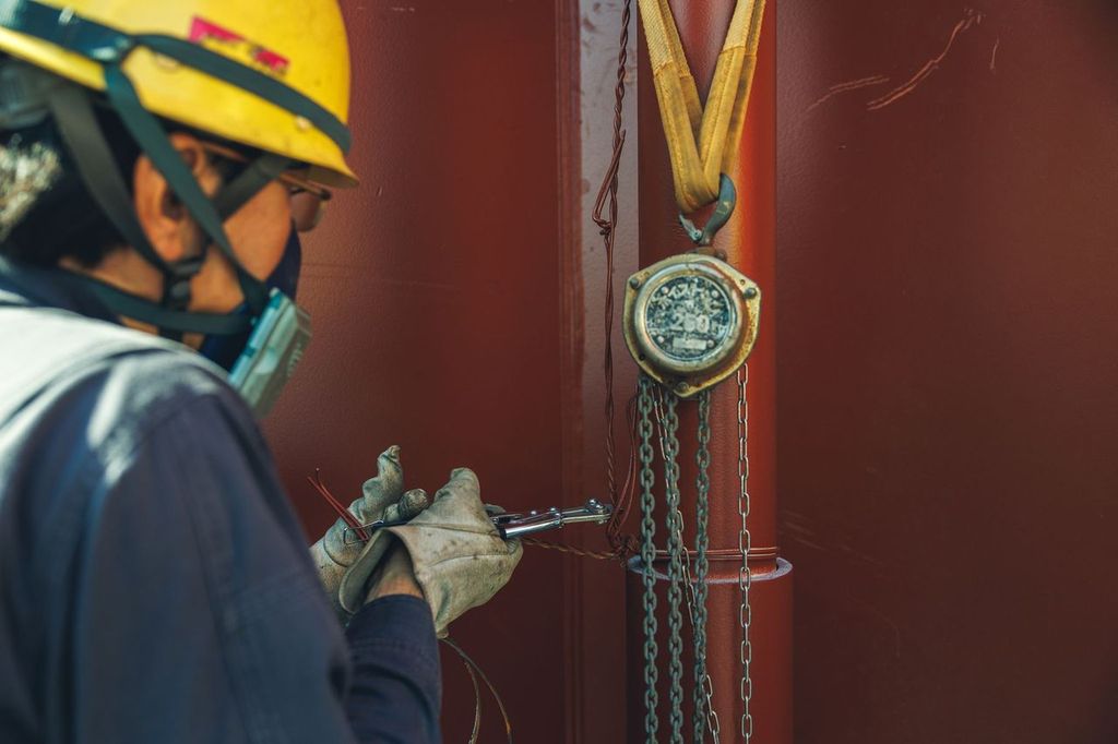 造船所内にて新造船のブロック組立・溶接作業及び管艤装。